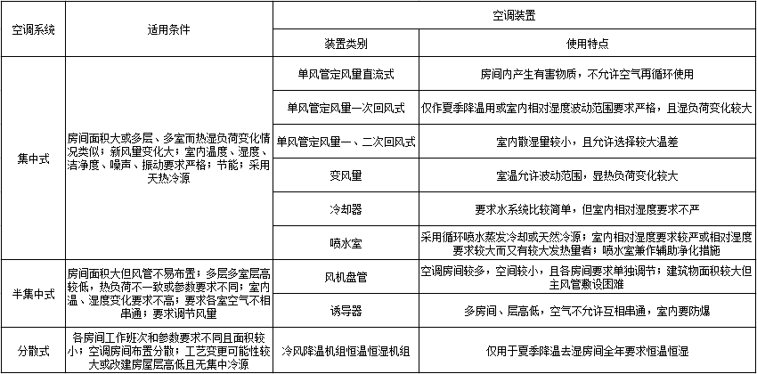 各類中央空調(diào)的使用特征